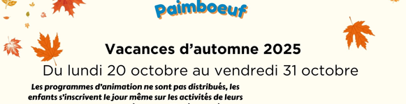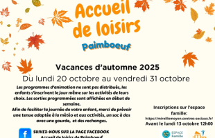 Voici la plaquette des vacances d’Automne pour l’Accueil de loisirs de Paimboeuf. Les inscriptions seront ouvertes via les espaces famille à partir de vendredi [+]